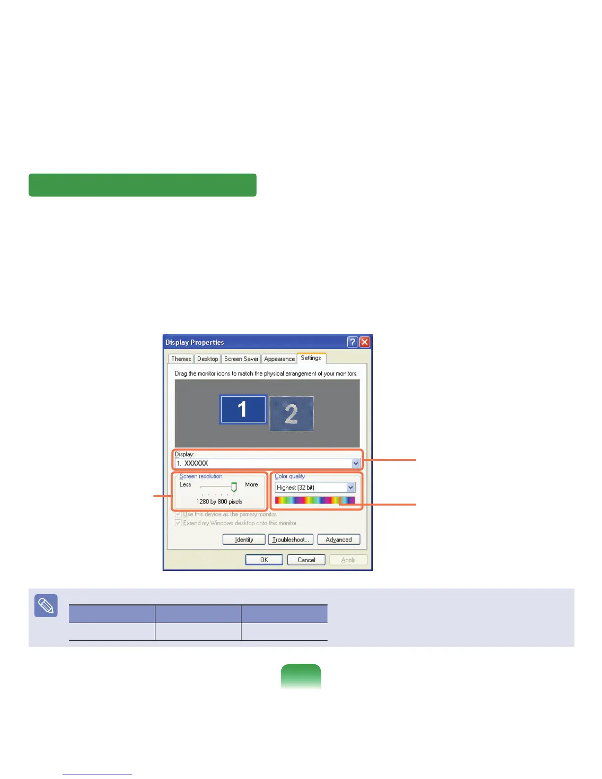 ItisrecommendedtosettheresolutionandcolorqualitydependingontheLCDtypeofyourcomputerasthefollowing: