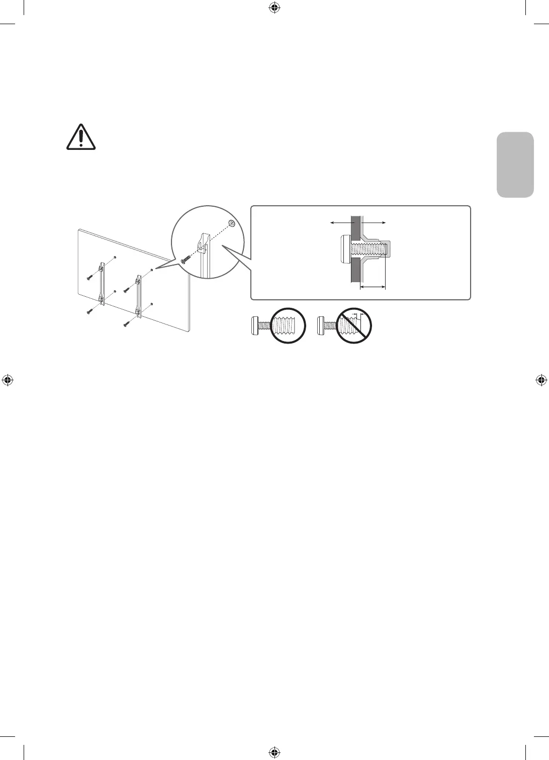 • Wenn Sie die Wandhalterung eines Drittanbieters montieren, müssen Sie beachten, dass die Länge der