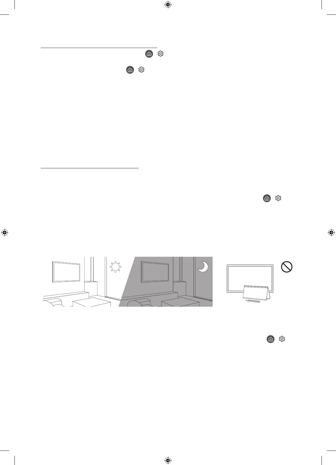 • Es kann auf die Umgebungslichterkennung zurückzuführen sein, wenn der Bildschirm beim Fernsehen in