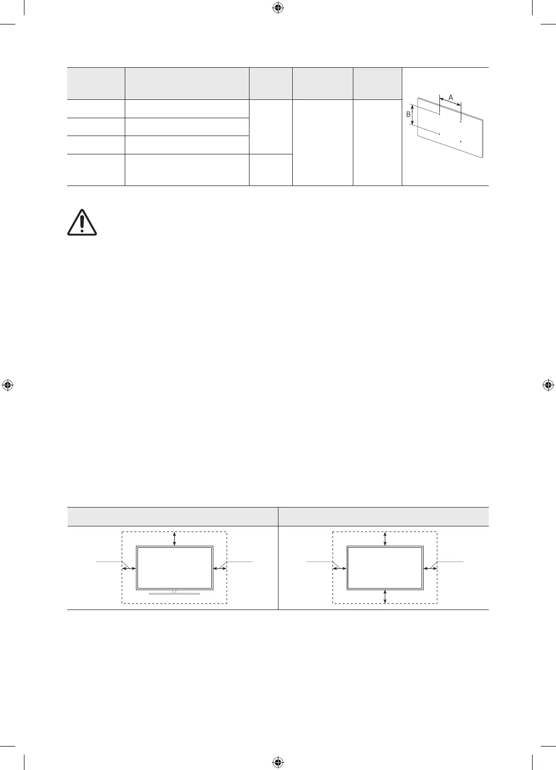 • Do not use screws that are longer than the standard dimension or do not comply with the VESA standard