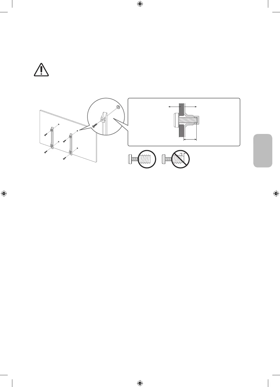 • Se si installa una staffa da parete di altri produttori, notare che la lunghezza delle viti da usare per fissare il