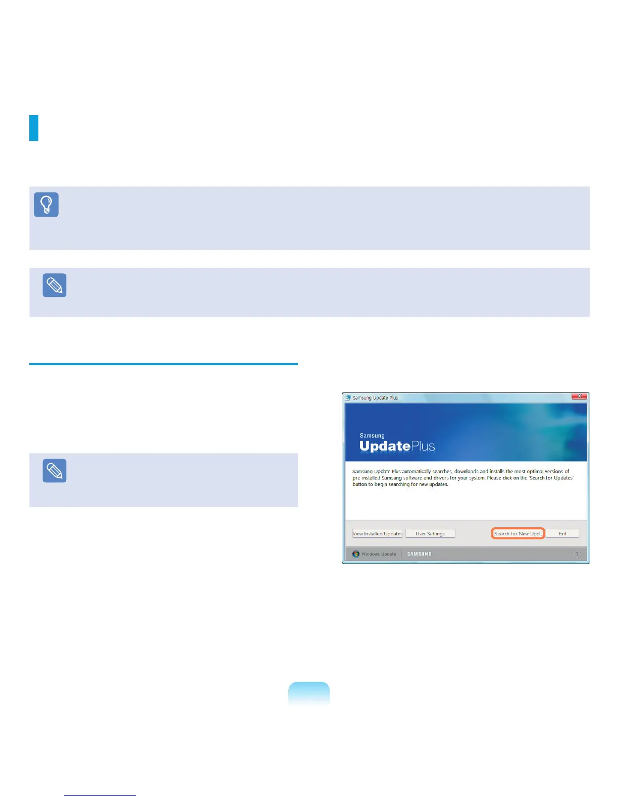 To search for updates and update your computer using Samsung Update Plus, your computer must be connected to the Internet.