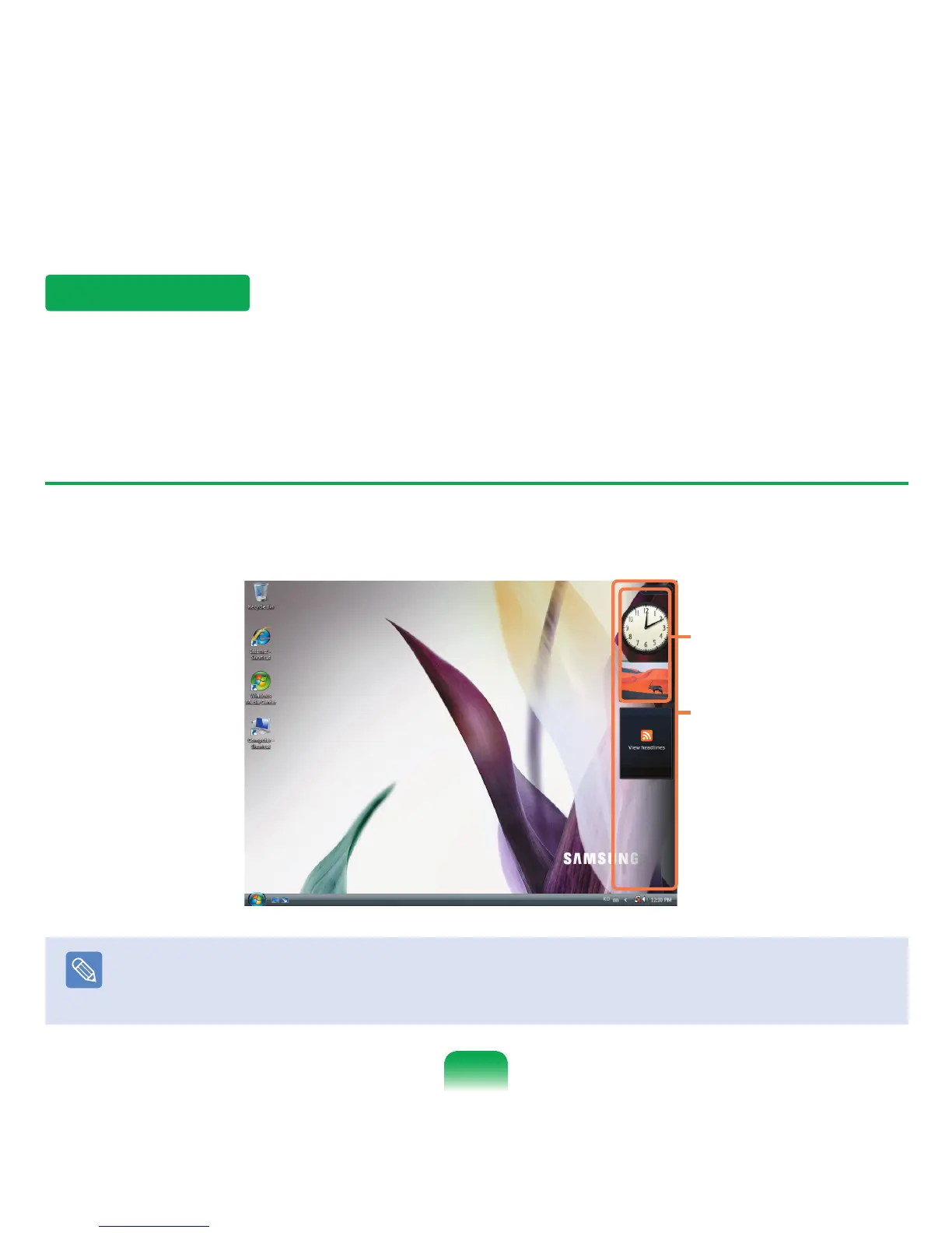 If you launch Windows, the Sidebar is automatically launched and the Sidebar and Gadget appear at the side of the