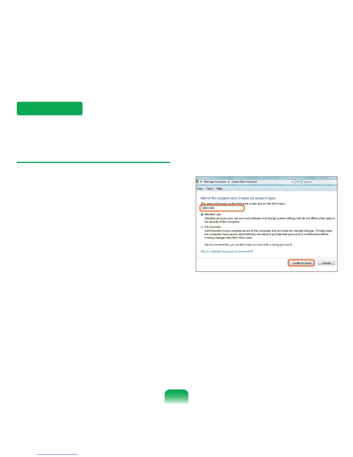 The procedures to add and delete a user account and to switch users are described below.