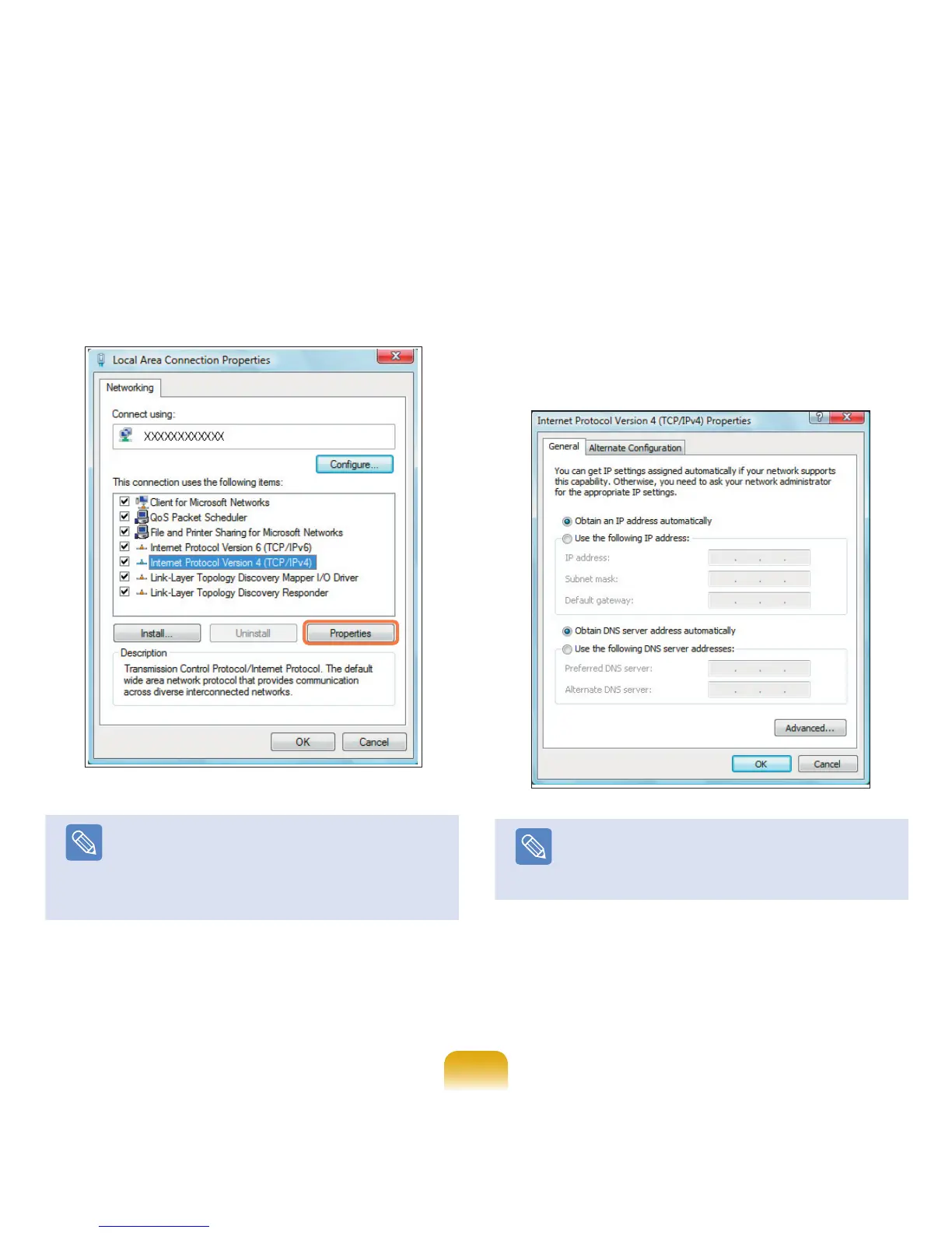 When using DHCP, select Obtain an IP address