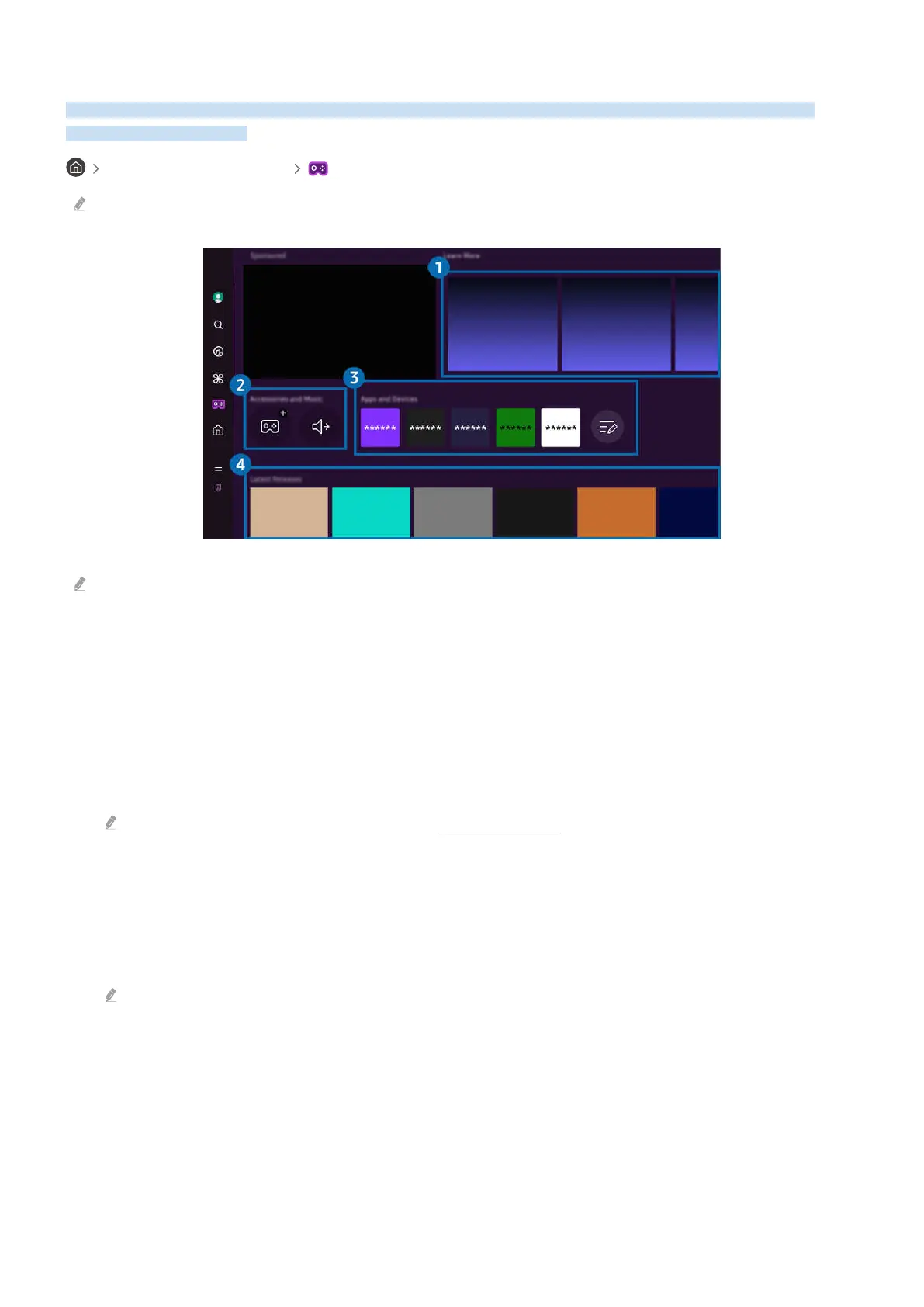 Provides information about Samsung Gaming Hub and details on how to use devices.