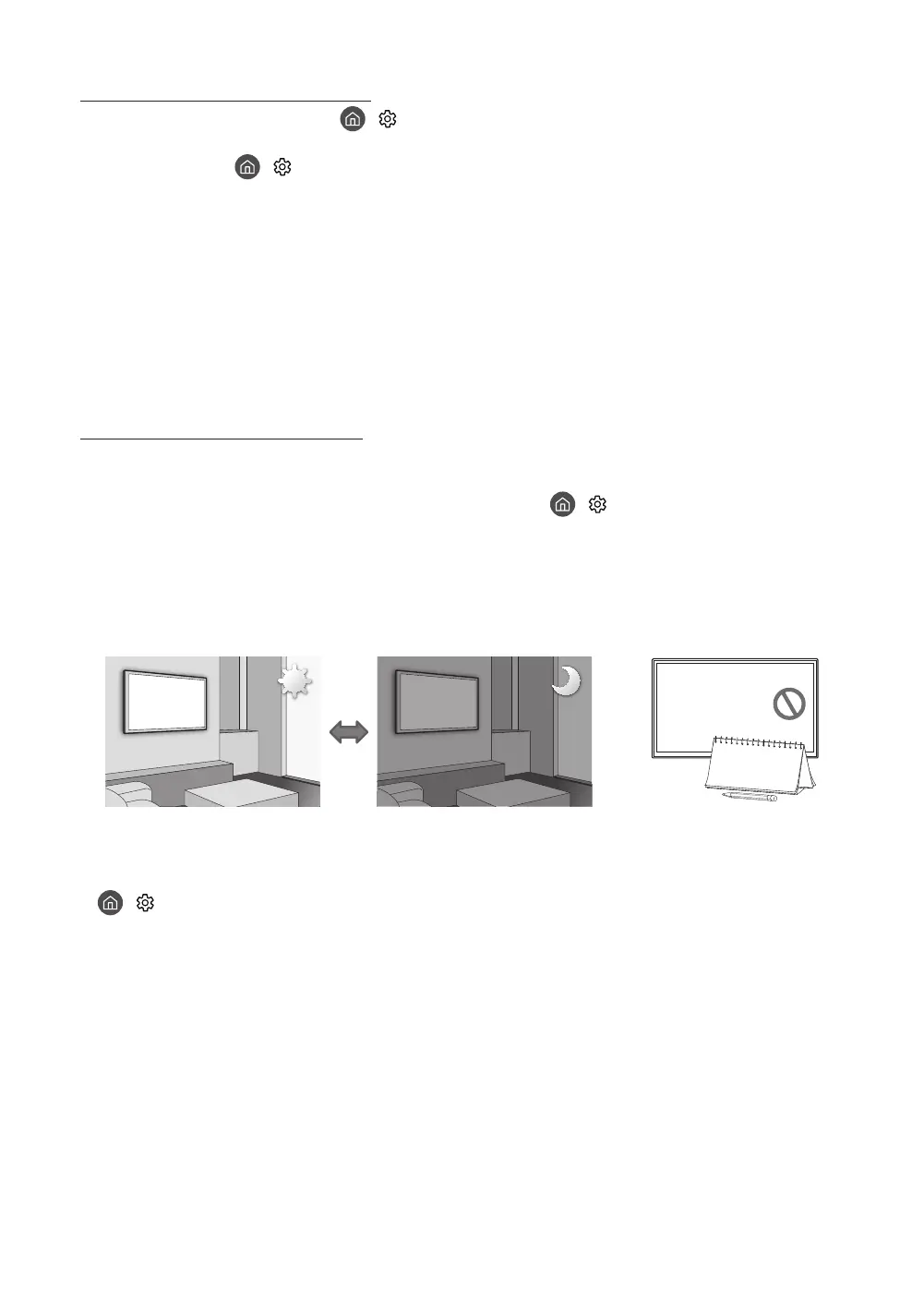 • If the screen is too dark while you are watching TV in a dark environment, it may be due to the Ambient