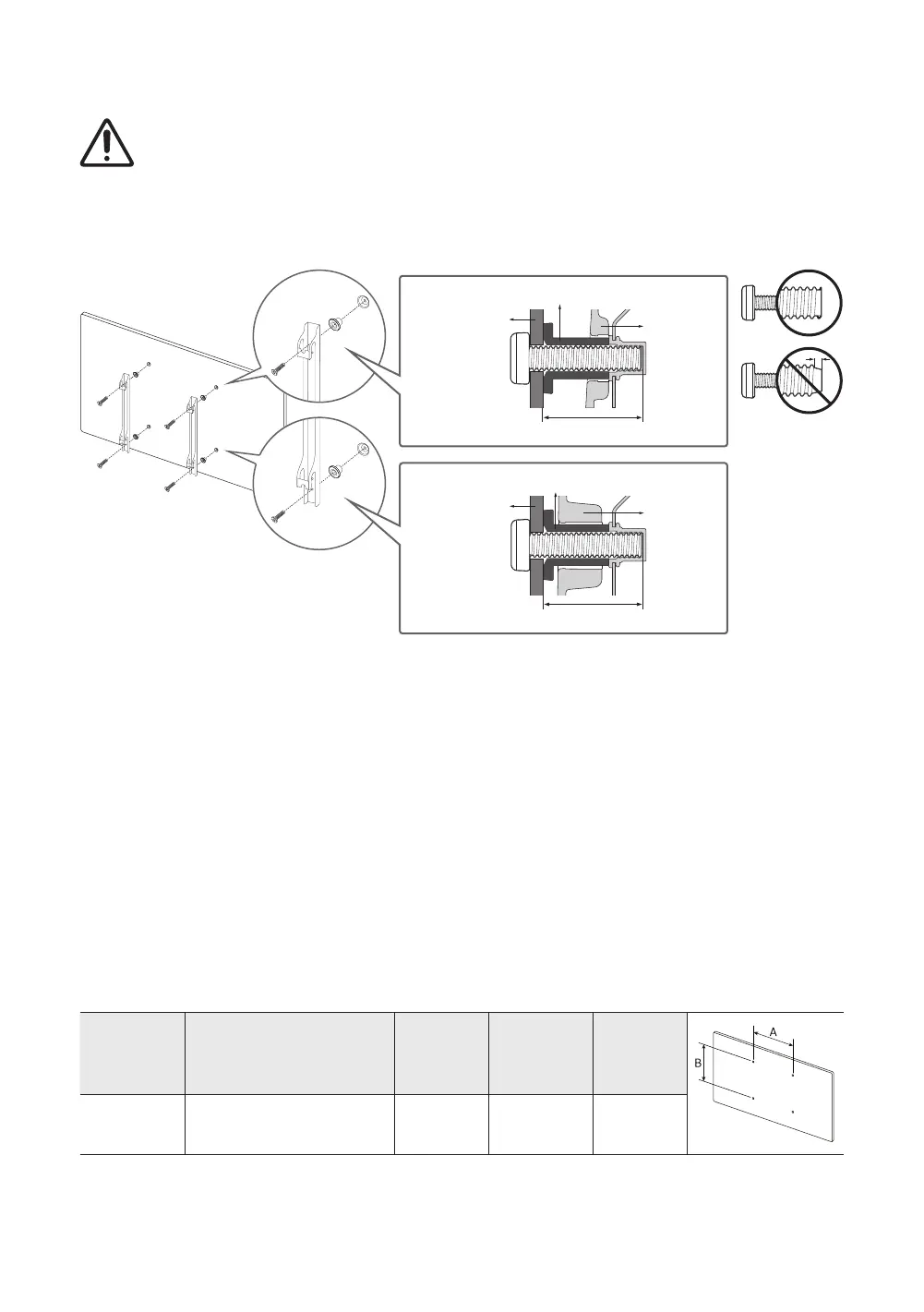 • Si instala un soporte de pared de terceros, tenga en cuenta que la longitud de los tornillos que puede usar