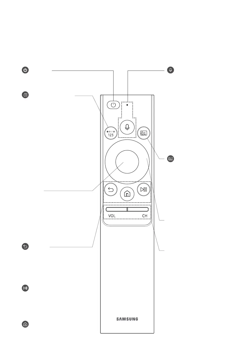 Acerca de los botones del Control remoto Samsung Smart