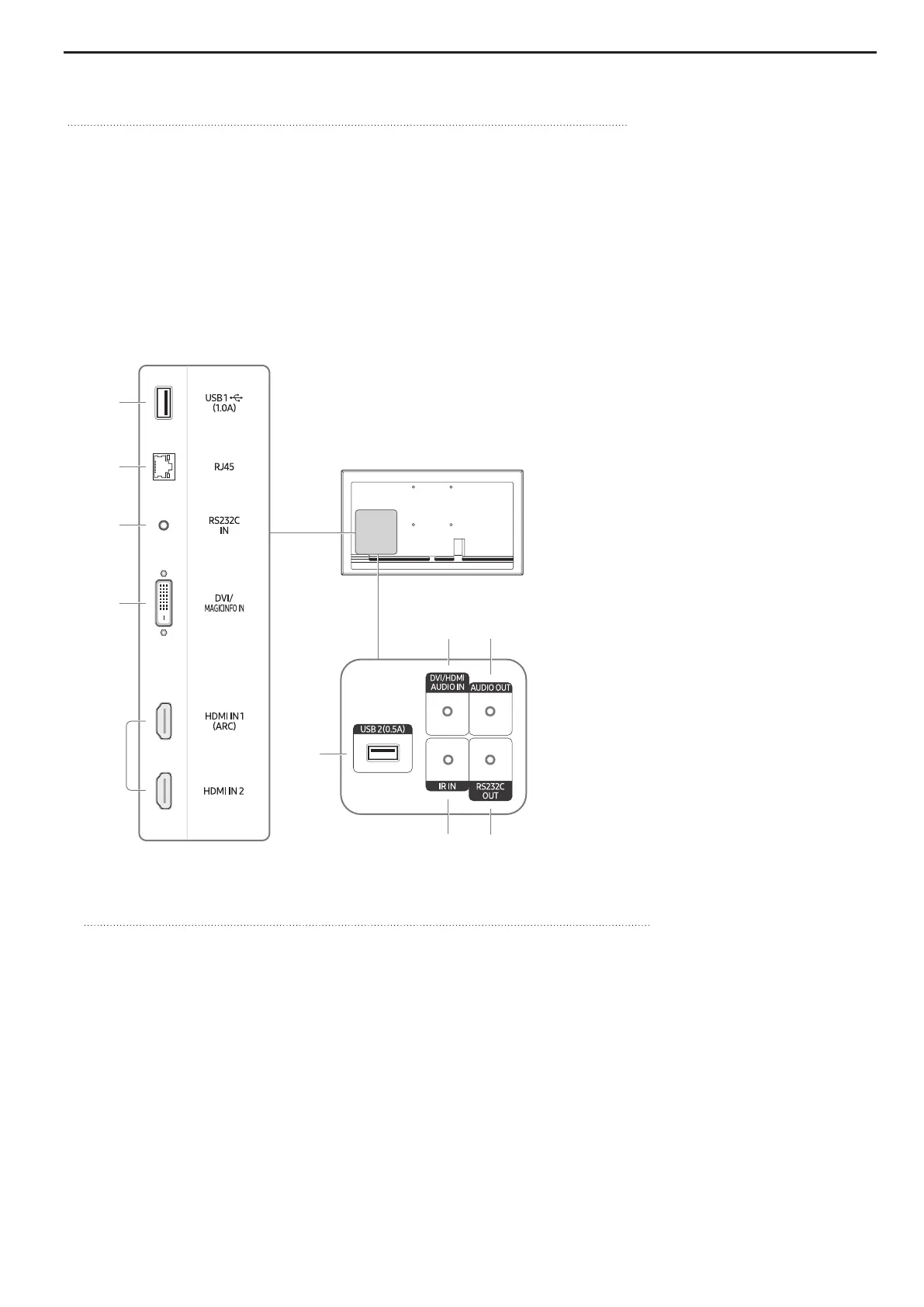 MAGICINFO IN: Connects to a network box using DP-DVI cable to use Magicinfo.