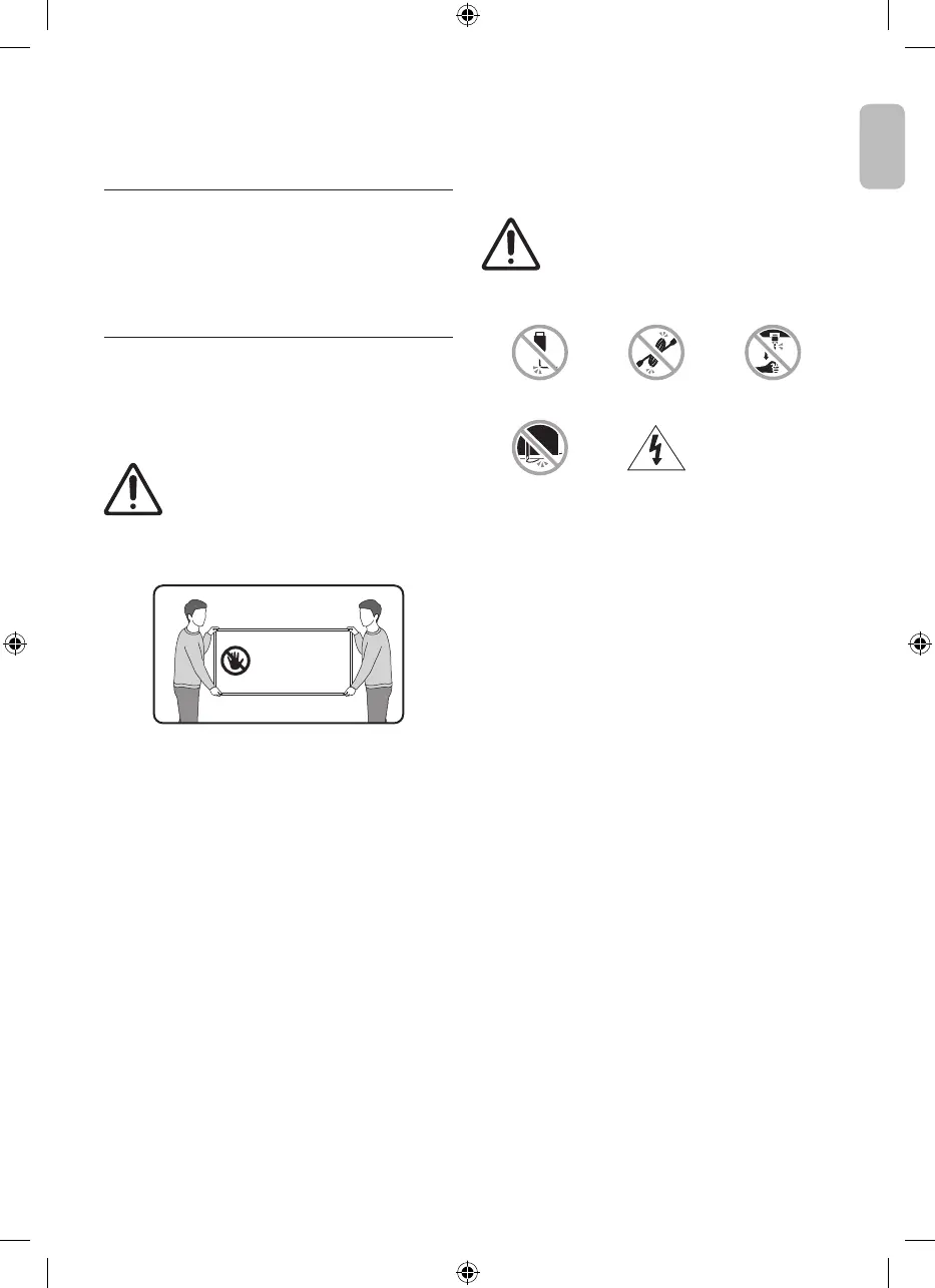 recommend lifting the TV at the edges, as shown.