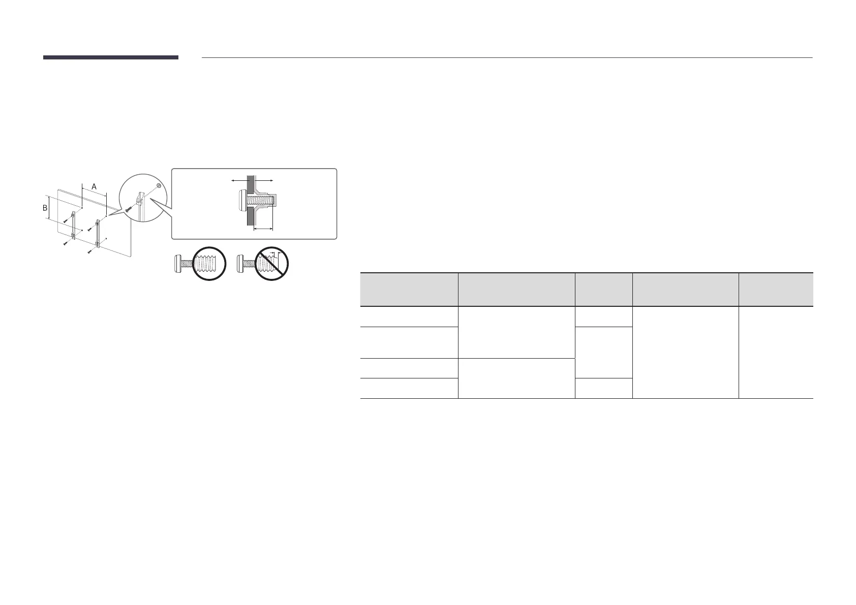 specifications. Screws that are too long may cause damage to the inside of the product.