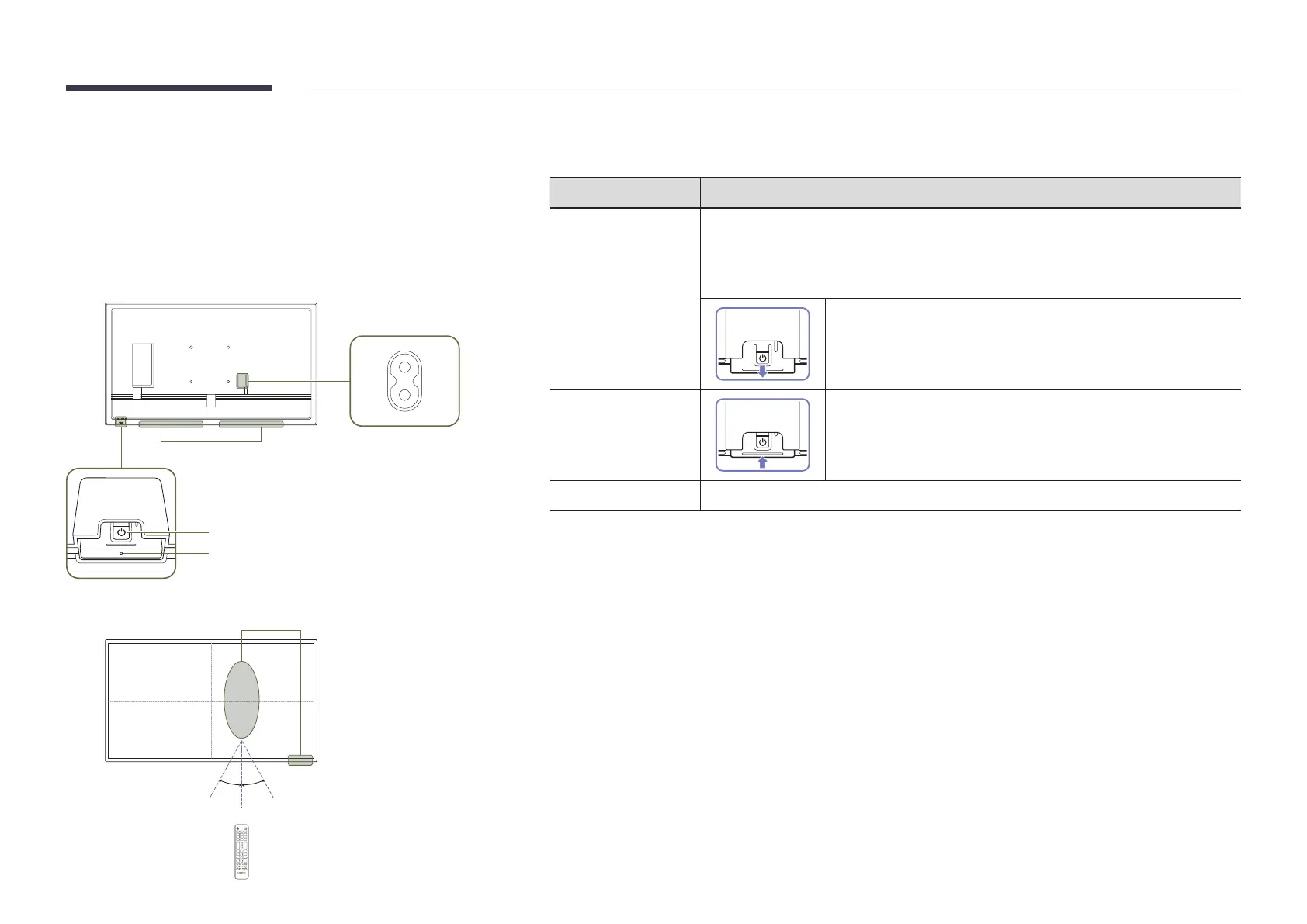 Remote sensor in the screen: Use the remote control within 2.5 m to 4 m from the sensor on the product at an angle