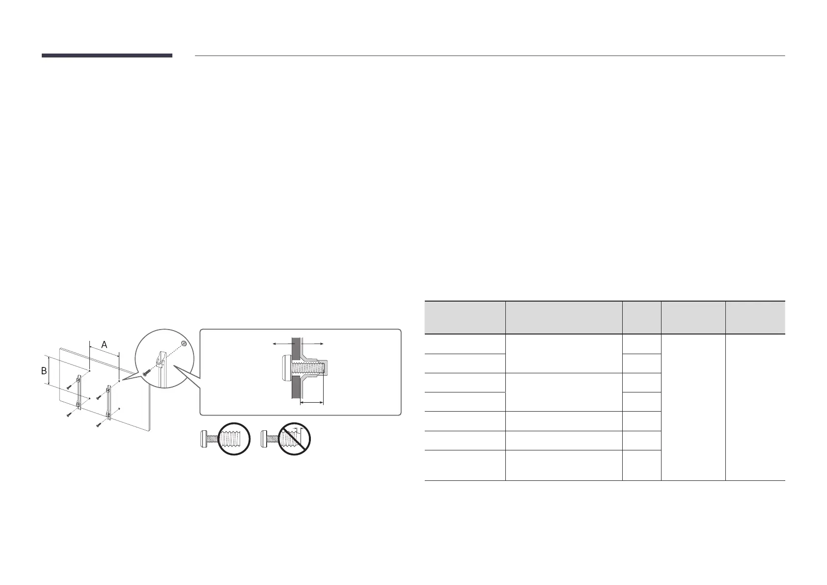 standard screw specifications. Screws that are too long may cause damage to the inside of
