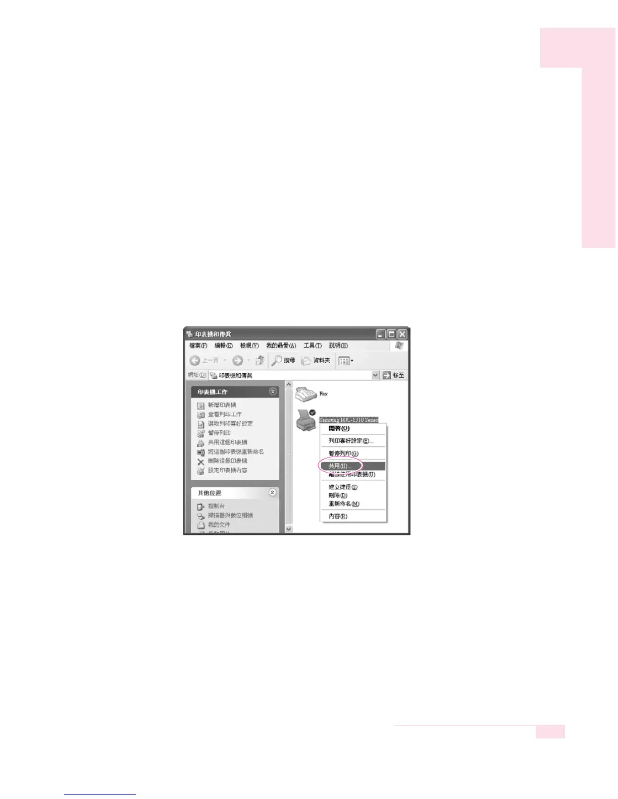 Step 1. Configure printer sharing in the computer connected to the printer.