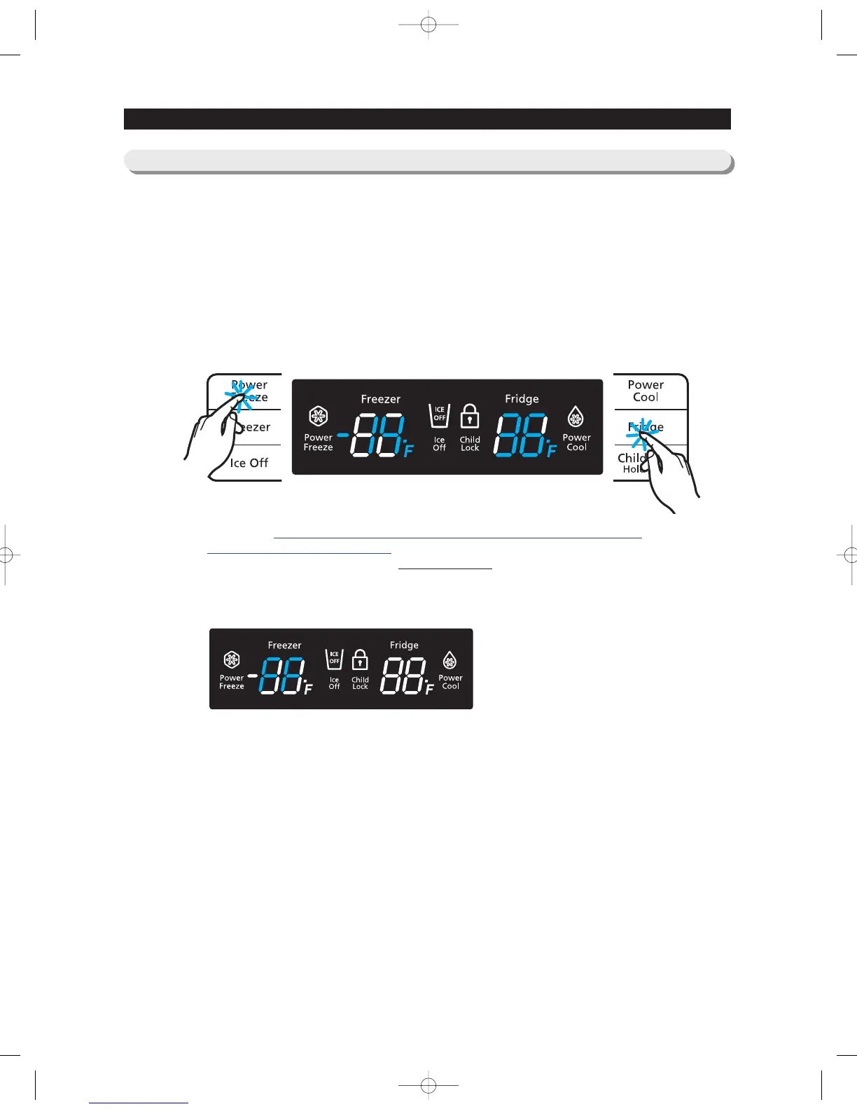 If the Power Freeze and Fridge Key on the front panel are pressed simultaneously for 8 seconds, it will be