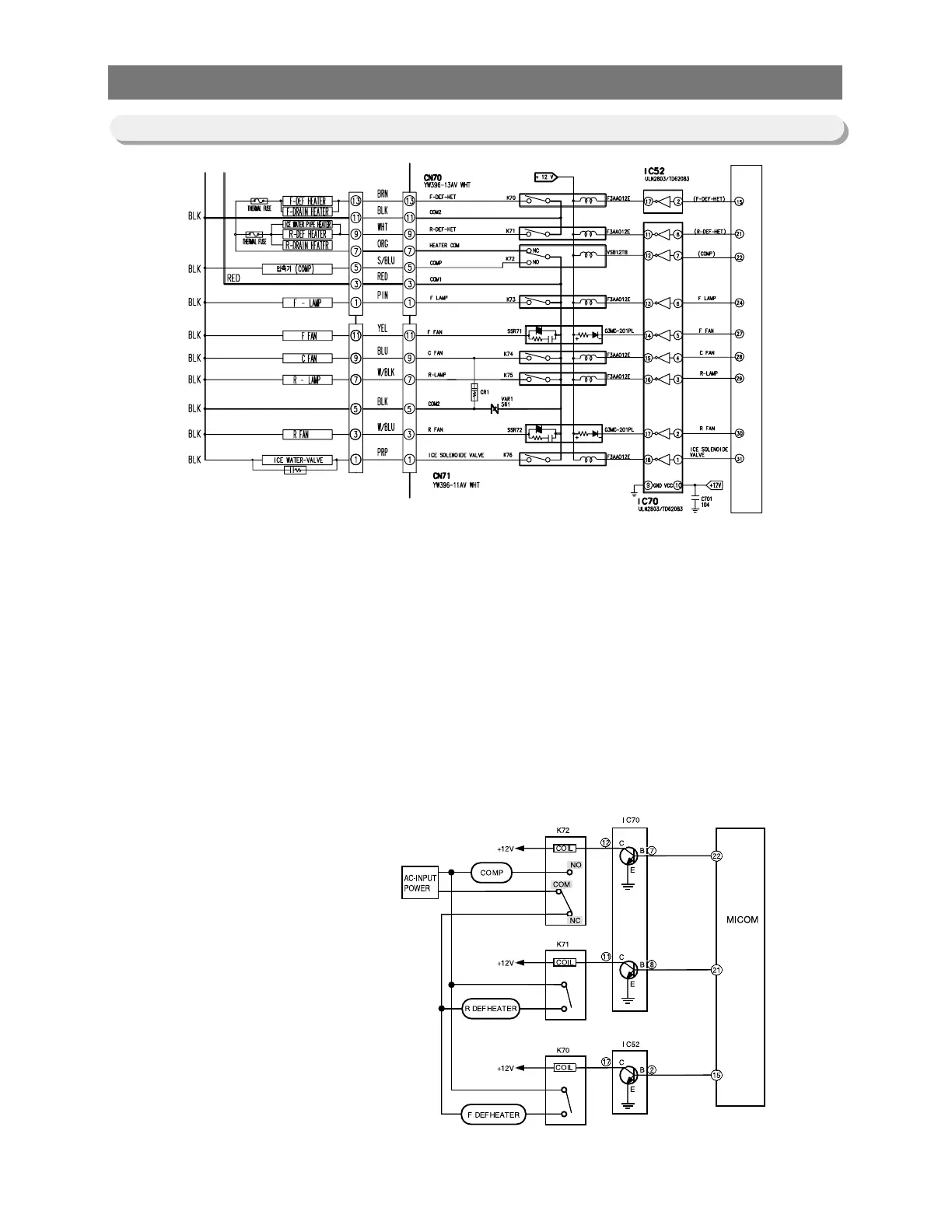 For example,to operate the compressor,MICOM Pin #22 outputs high (5V)signals which go into IC70 Pin