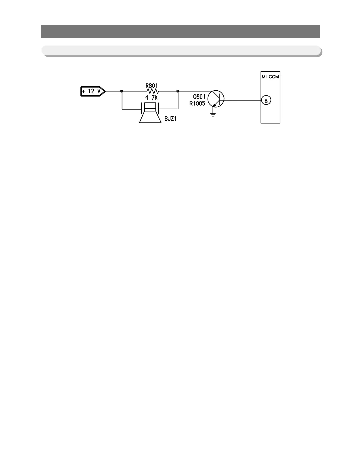transistor is turned on applying 12V to the buzzer,which operates the buzzer. 4.7Kohm of R801 is a