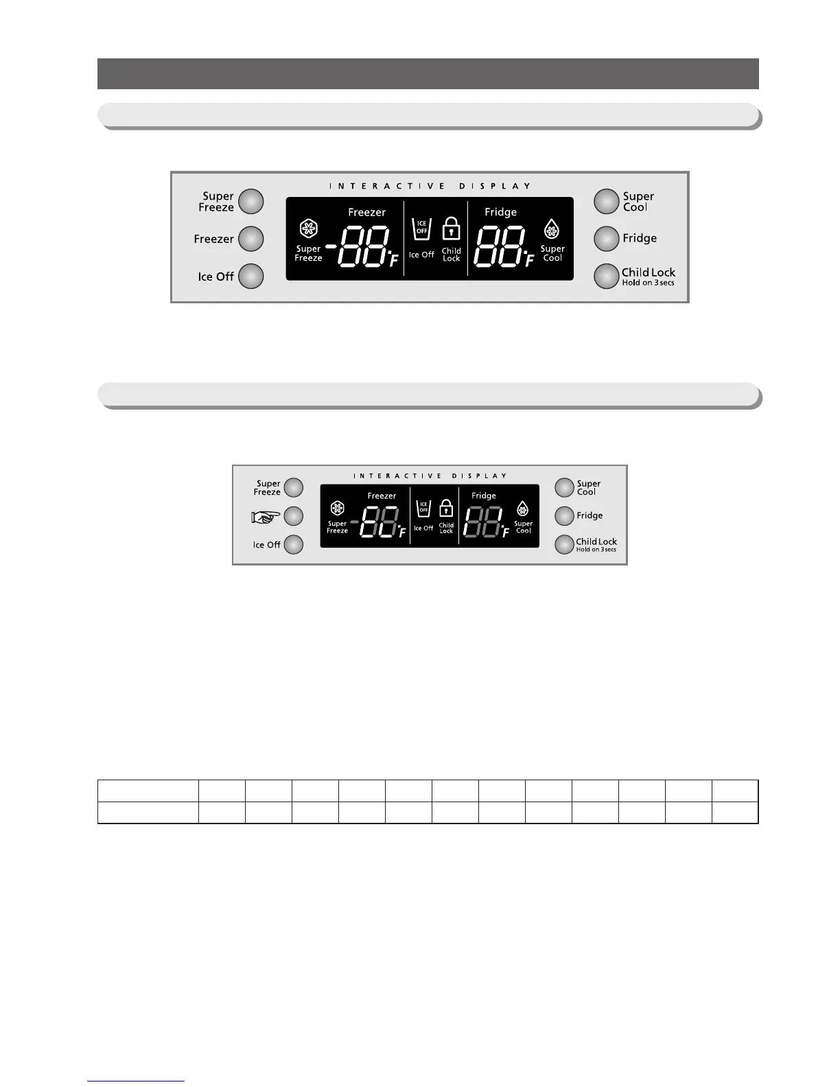 When the Freezer button is pressed,the current set temp will be displayed.And, when the button is pressed