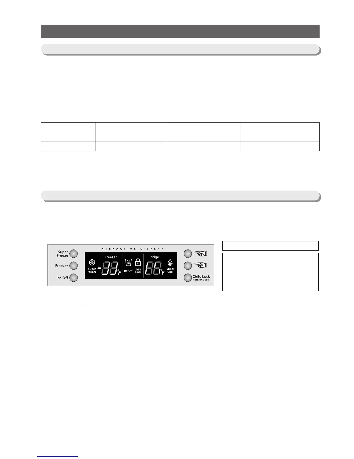 1-2) When any of Super Freeze,Super Cool,Freezer and Fridge buttons is pressed within 15 seconds with the