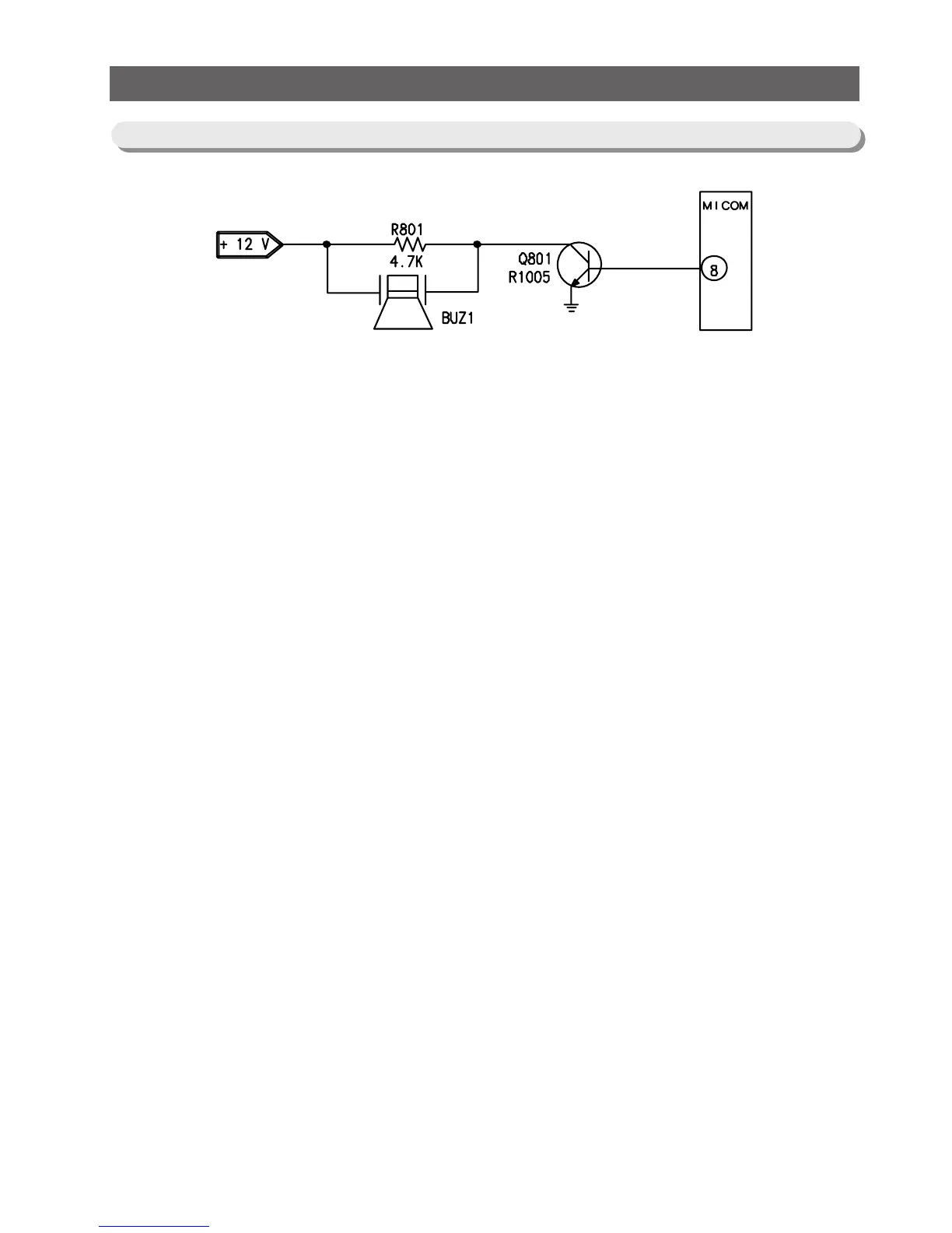 transistor is turned on applying 12V to the buzzer,which operates the buzzer. 4.7Kohm of R801 is a