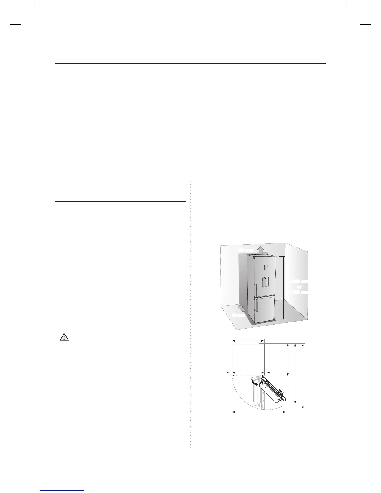 Allow sufficient space to install the refrigerator •