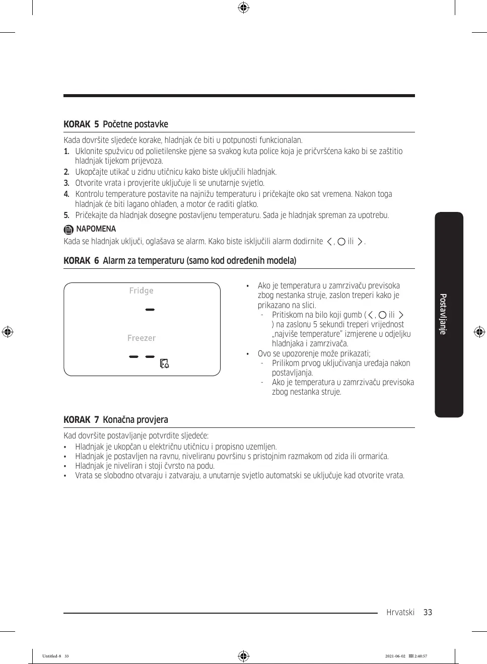 KORAK 6 Alarm za temperaturu (samo kod određenih modela)