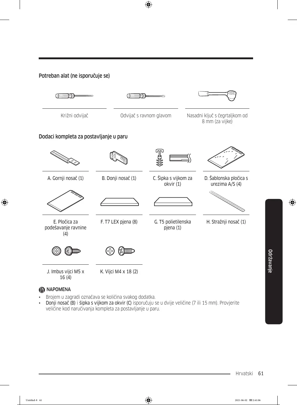 veličine kod naručivanja kompleta za postavljanje u paru.