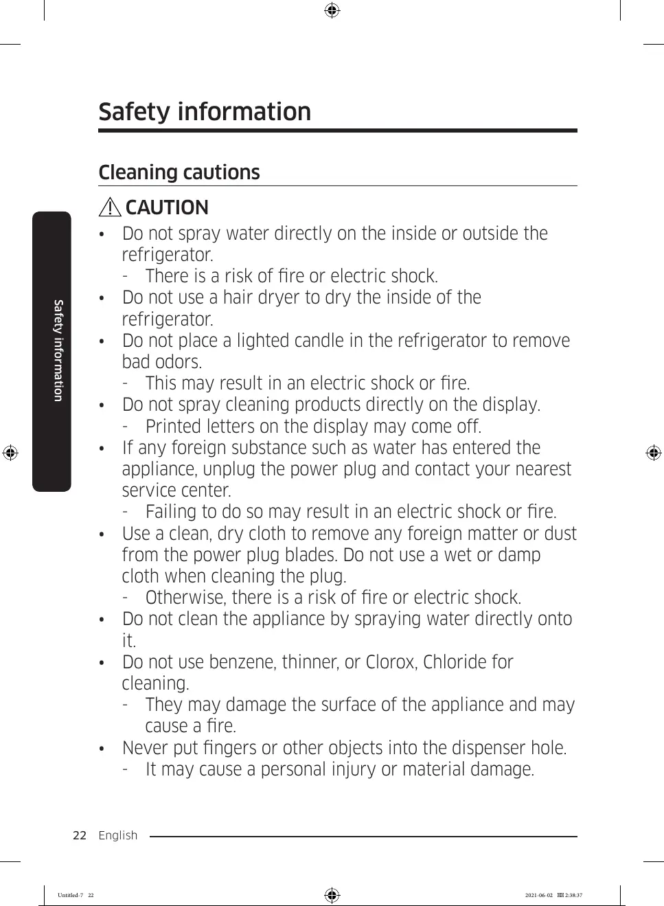 Cleaning cautions