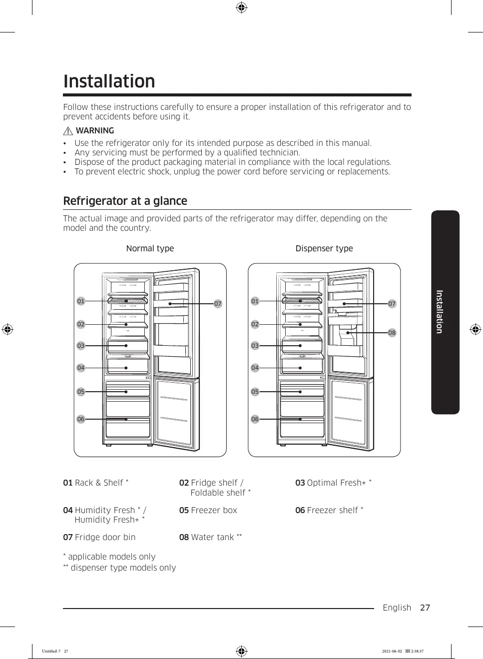 05 Freezer box 06 Freezer shelf *
