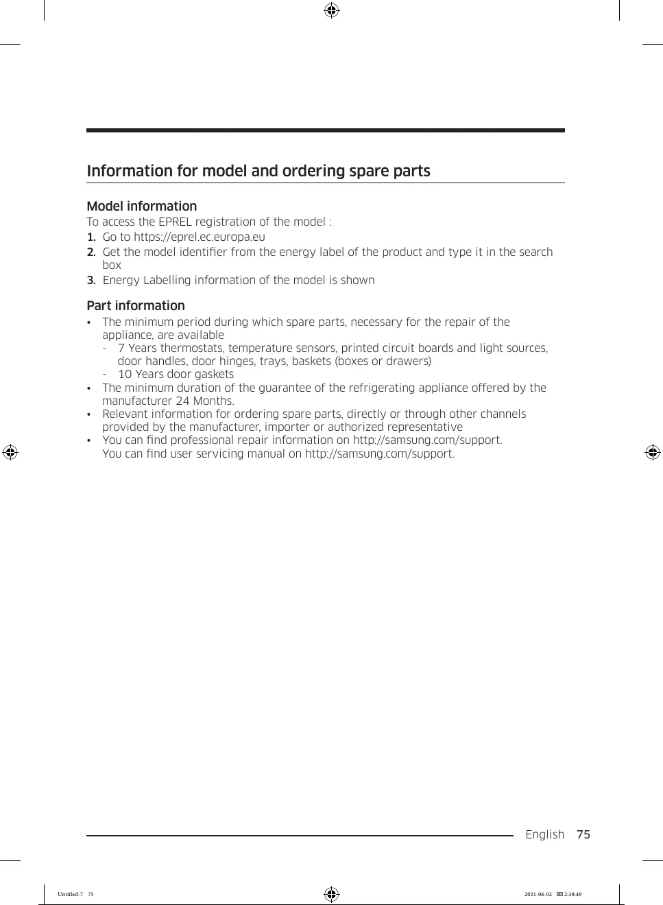 • The minimum duration of the guarantee of the refrigerating appliance offered by the
