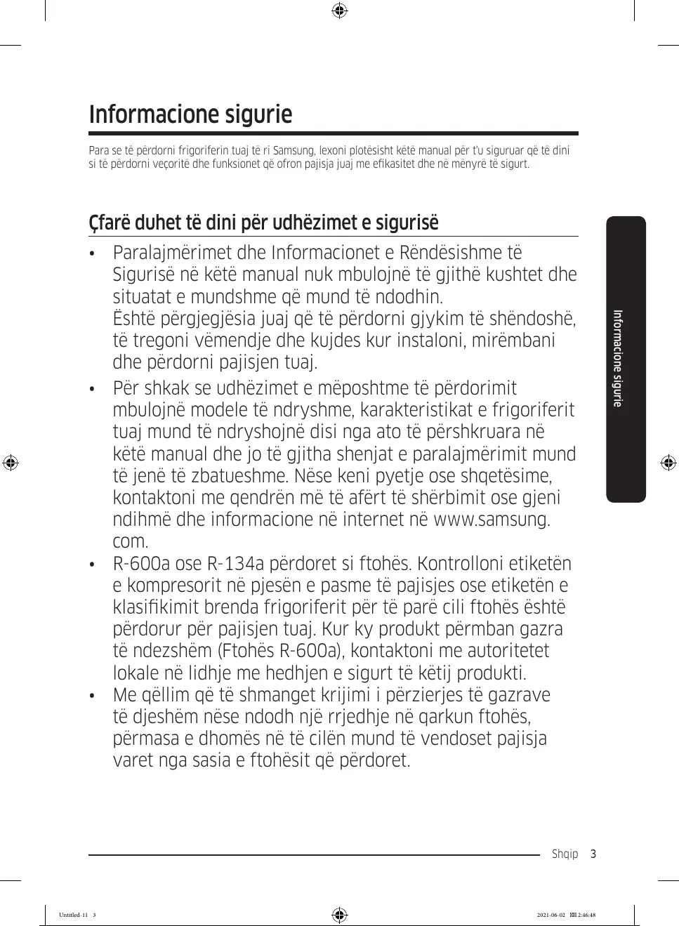 Para se të përdorni frigoriferin tuaj të ri Samsung, lexoni plotësisht këtë manual për t'u siguruar që të dini