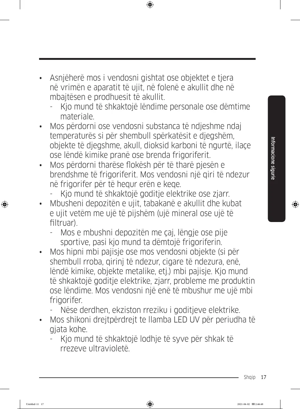 - Kjo mund të shkaktojë lëndime personale ose dëmtime