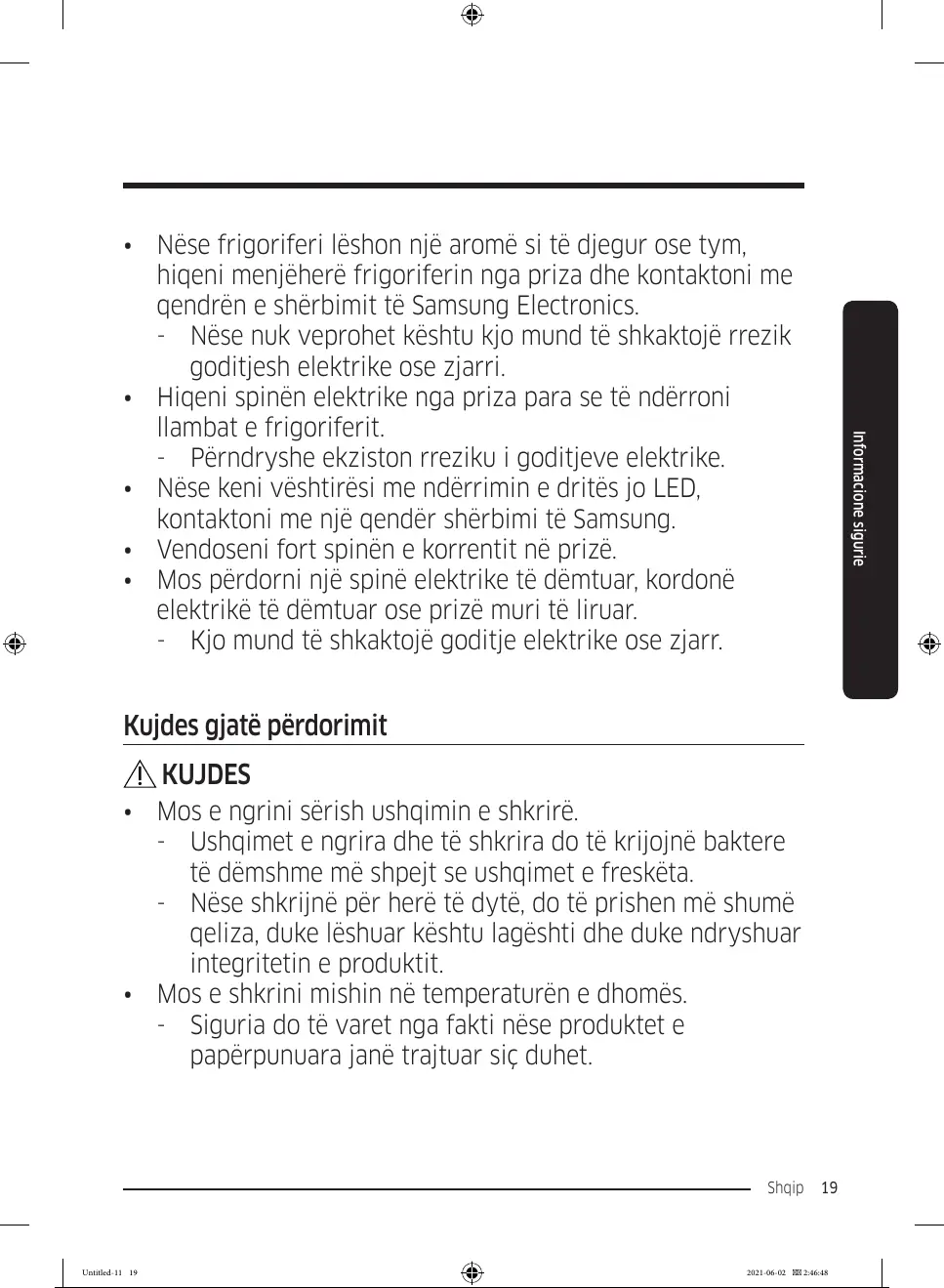 - Përndryshe ekziston rreziku i goditjeve elektrike.
