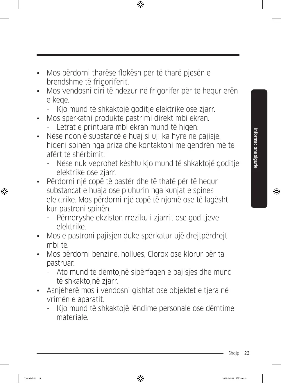 - Kjo mund të shkaktojë goditje elektrike ose zjarr.