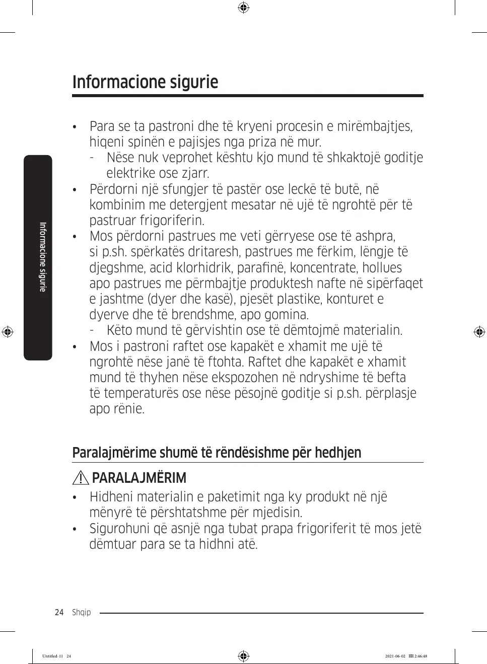 • Para se ta pastroni dhe të kryeni procesin e mirëmbajtjes,