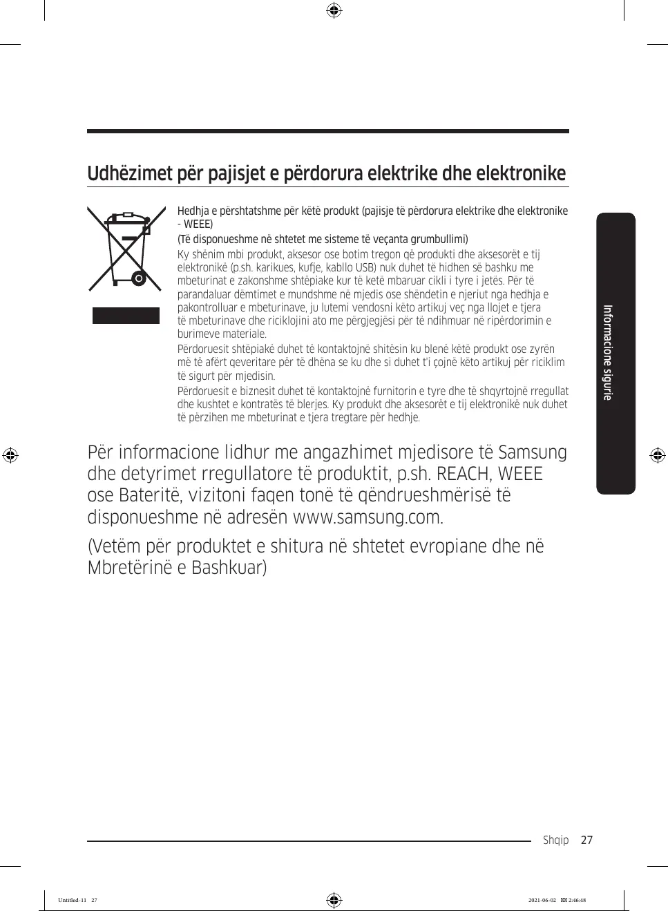 dhe detyrimet rregullatore të produktit, p.sh. REACH, WEEE