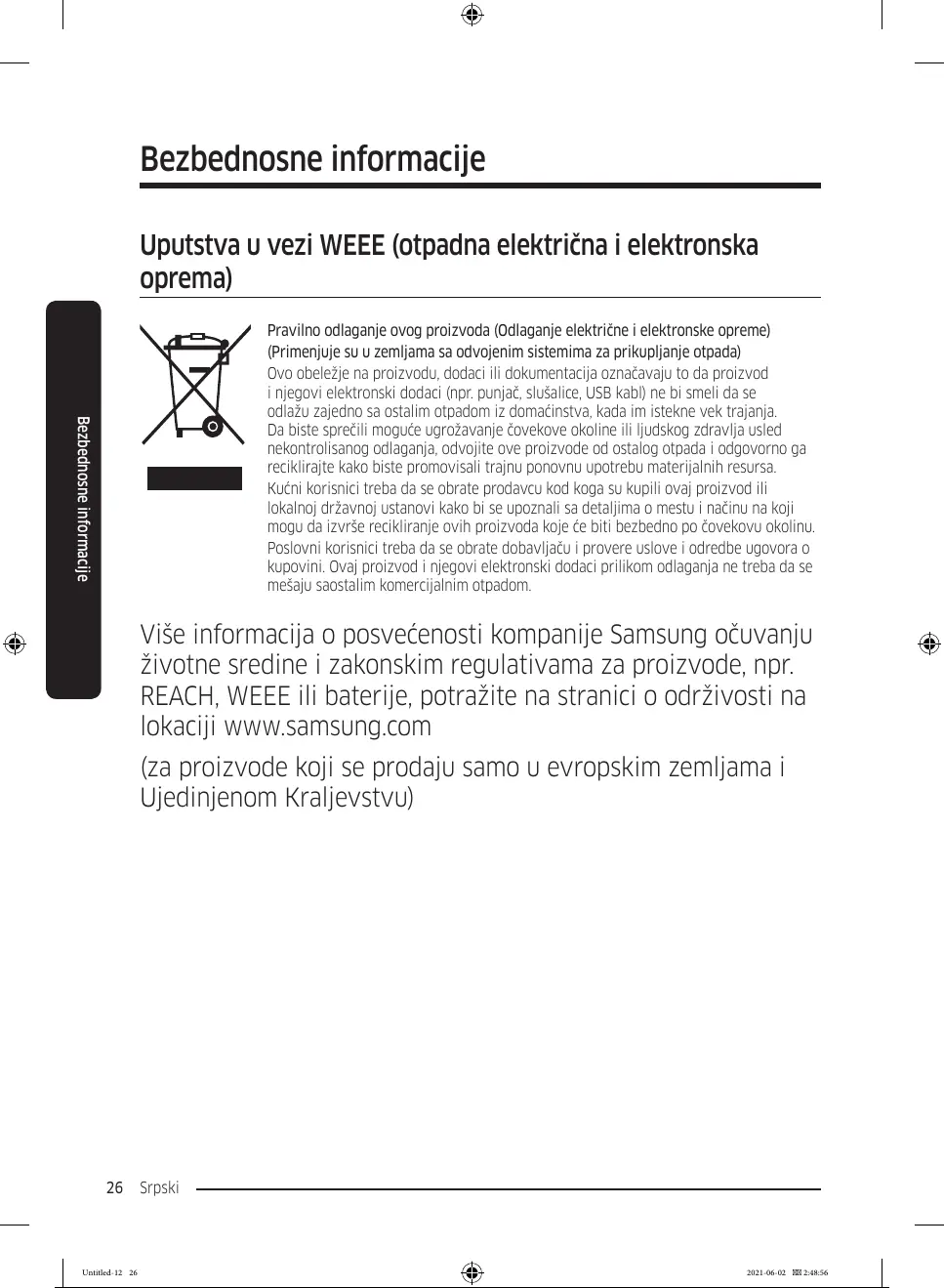 kupovini. Ovaj proizvod i njegovi elektronski dodaci prilikom odlaganja ne treba da se