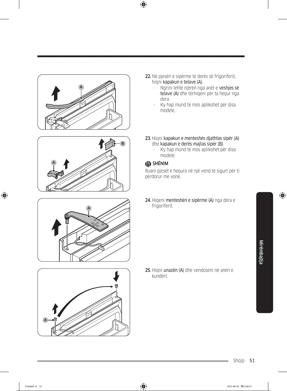 24. Hiqeni menteshën e sipërme (A) nga dera e