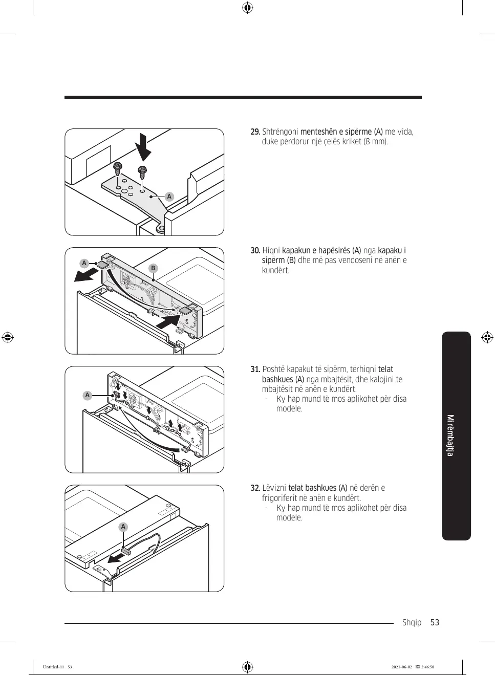 29. Shtrëngoni menteshën e sipërme (A) me vida,