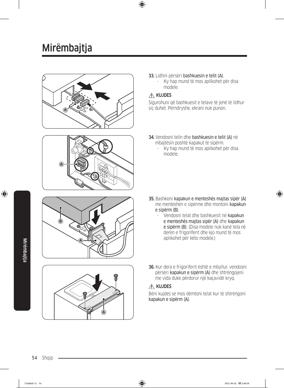 Bëni kujdes se mos dëmtoni telat kur të shtrëngoni