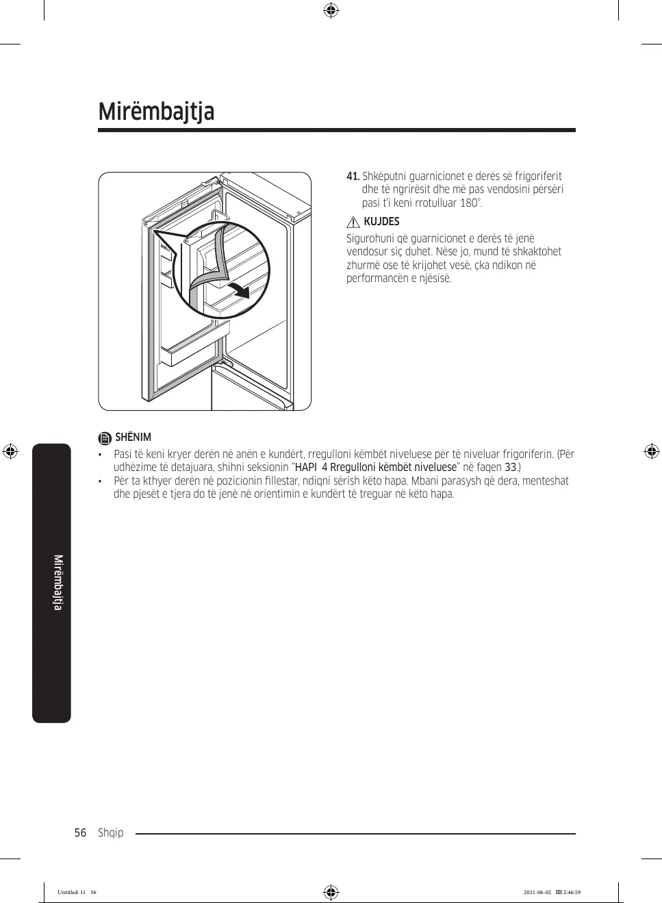 • Për ta kthyer derën në pozicionin llestar, ndiqni sërish këto hapa. Mbani parasysh që dera, menteshat