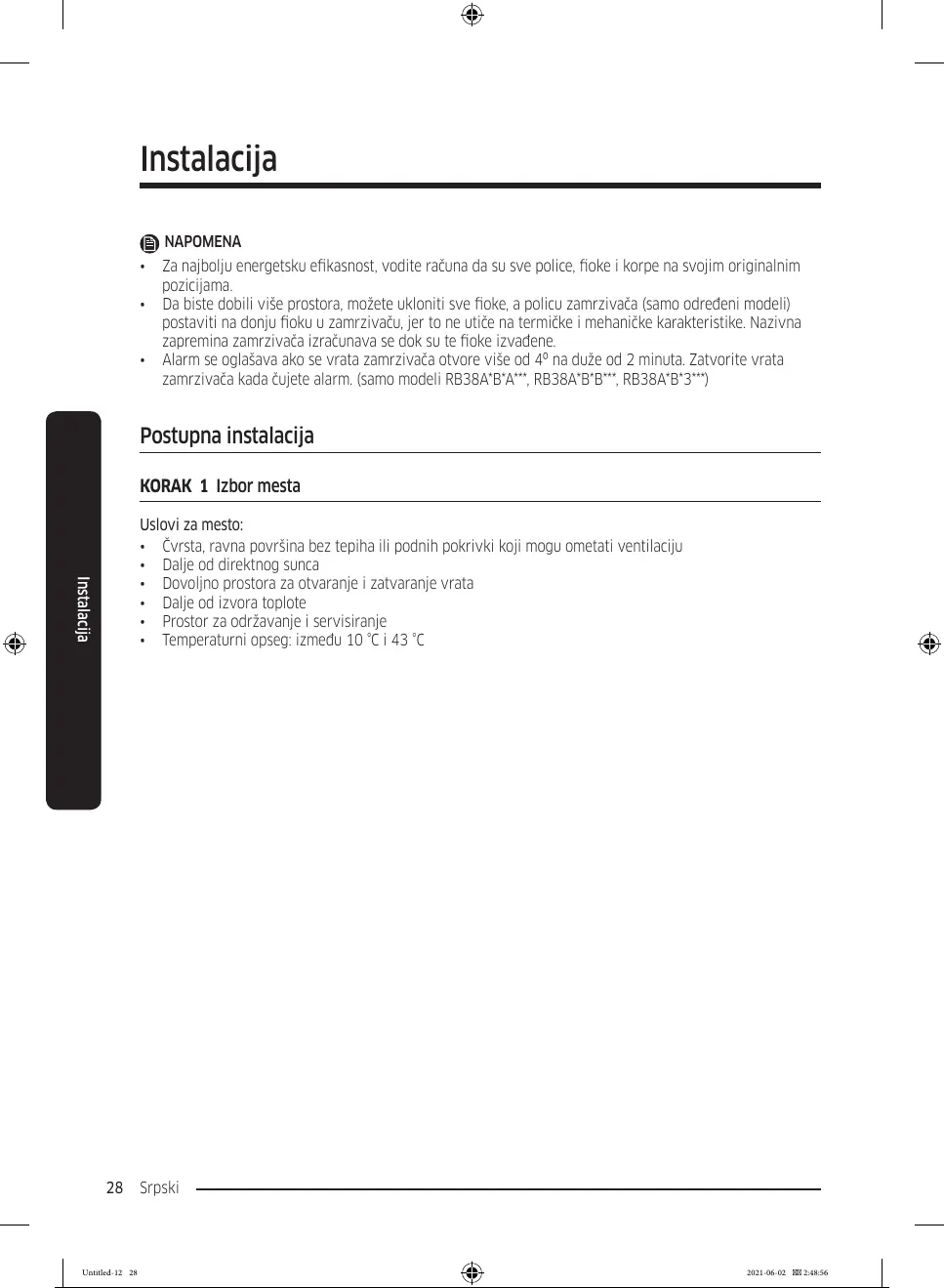 • Za najbolju energetsku ekasnost, vodite računa da su sve police, oke i korpe na svojim originalnim