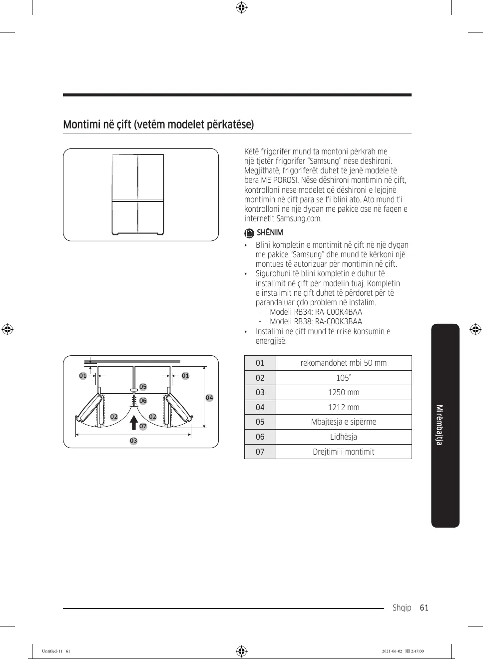 instalimit në çift për modelin tuaj. Kompletin