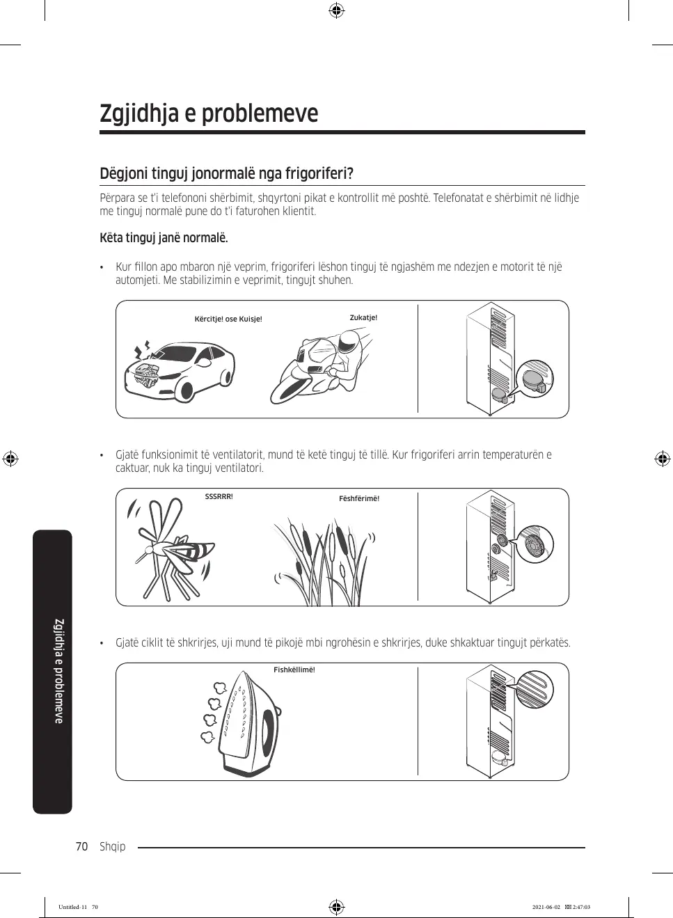 • Kur llon apo mbaron një veprim, frigoriferi lëshon tinguj të ngjashëm me ndezjen e motorit të një
