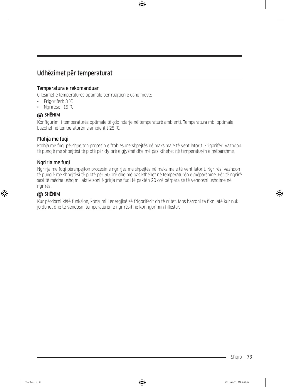 Kur përdorni këtë funksion, konsumi i energjisë së frigoriferit do të rritet. Mos harroni ta kni atë kur nuk
