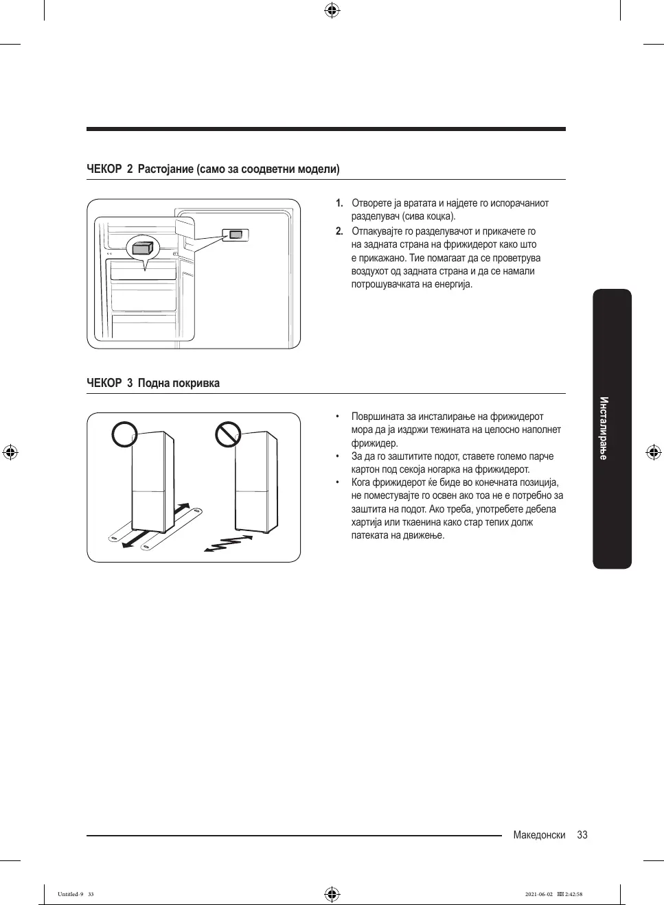 • Површинатазаинсталирањенафрижидерот