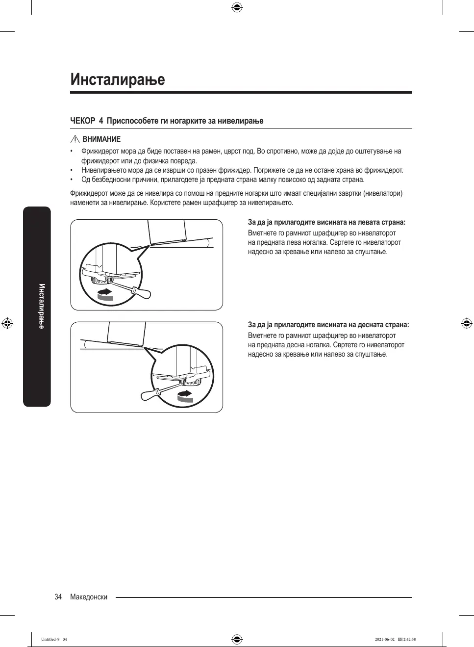 ЧЕКОР 4 Приспособете ги ногарките за нивелирање