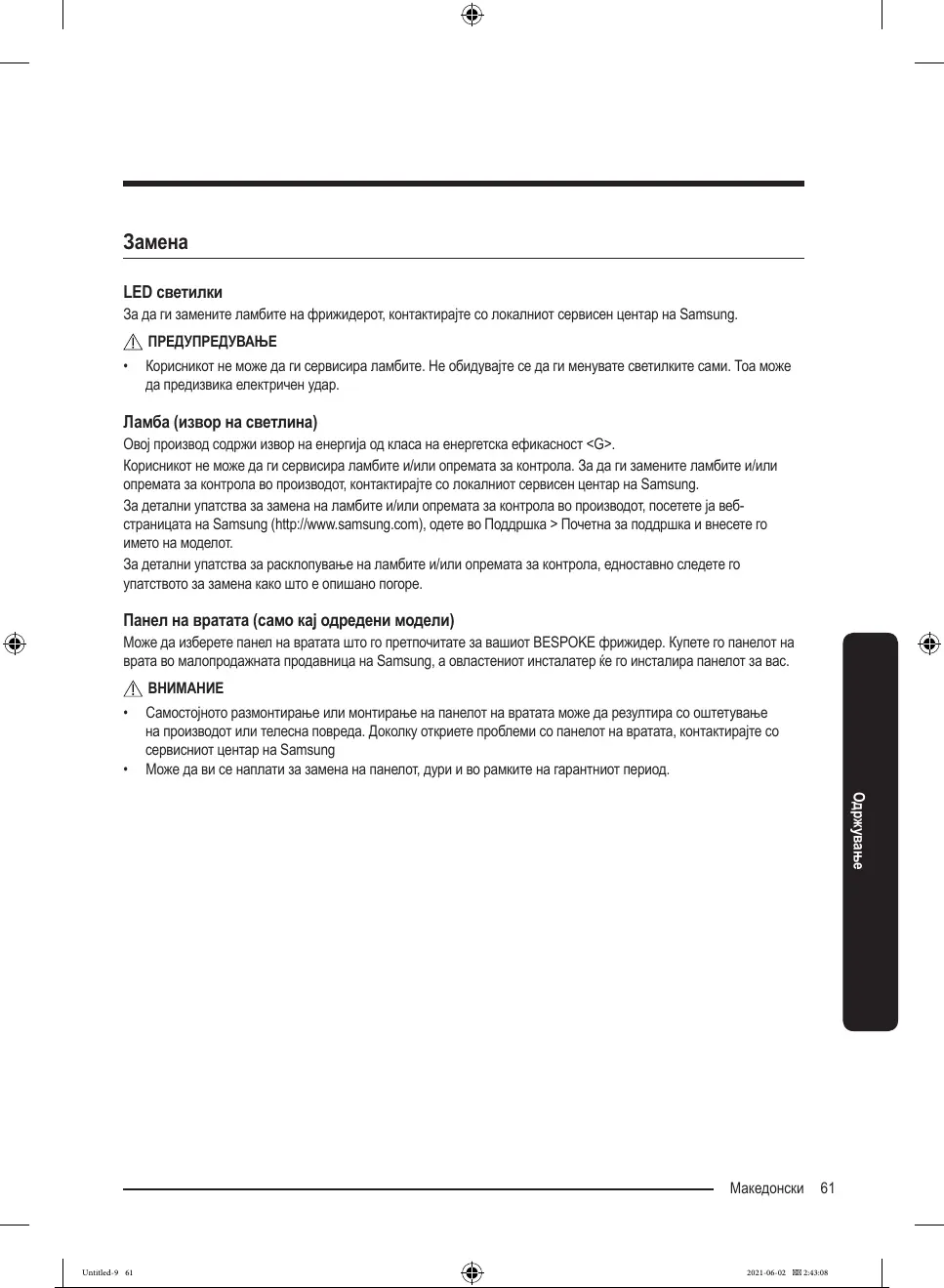 Задагизаменителамбитенафрижидерот,контактирајтесолокалниотсервисенцентарнаSamsung.
