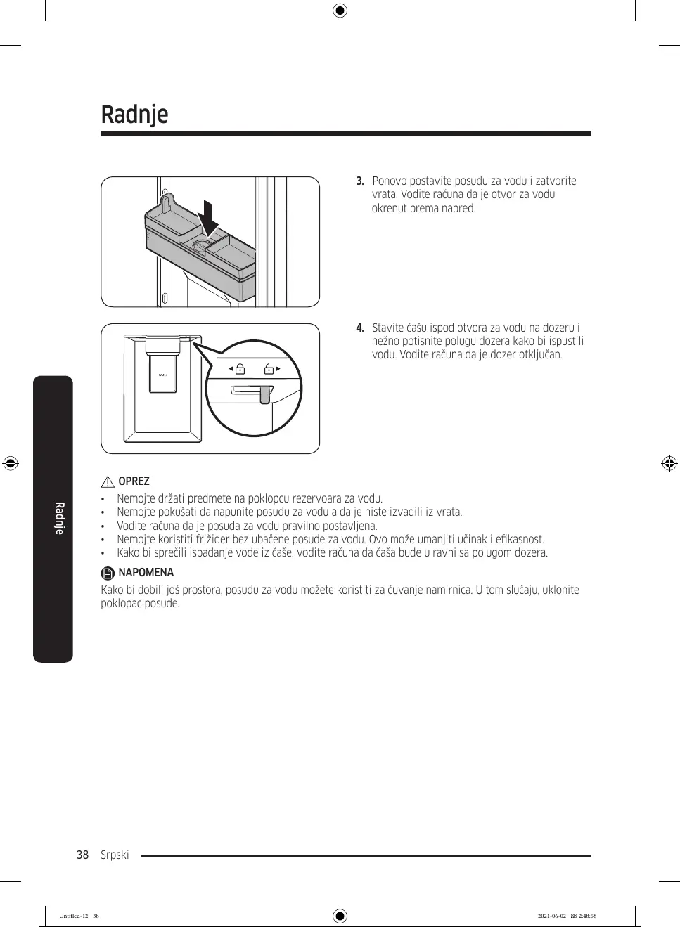 3. Ponovo postavite posudu za vodu i zatvorite
